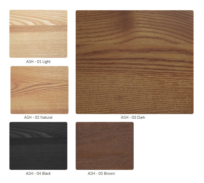 Farbe Holz: B 02- NATURAL ASH (Natürliche Esche) | C 03-DARK ASH (Dunkle Esche) | D 04-BLACK ASH (Schwarze Esche) | E 05- BROWN ASH (Braune Esche)