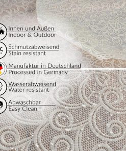 Unsere Lace Vinyl Tischdecke aus 100% Vinyl besticht durch ihre elegante Häkelspitze-Optik und ist die perfekte Wahl für Feste, Partys und den täglichen Gebrauch in der Küche, im Esszimmer, Garten, auf dem Balkon oder beim Camping. Dank des Lotuseffekts ist die Tischdecke wasserabweisend und wasserundurchlässig, sodass verschüttete Flüssigkeiten einfach abperlen. Die schmutzabweisende und abwaschbare Oberfläche macht die Pflege besonders einfach. Flecken sollten sofort entfernt werden, um Verfärbungen zu vermeiden. Die rutschfeste Unterseite sorgt dafür, dass die Tischdecke sicher an ihrem Platz bleibt. Bitte beachten Sie, dass die Tischdecke nicht in der Waschmaschine oder im Trockner gereinigt werden sollte. Holen Sie sich jetzt diese elegante Tischdecke mit Häkelspitze-Optik und verleihen Sie Ihrem Tisch einen stilvollen Look!