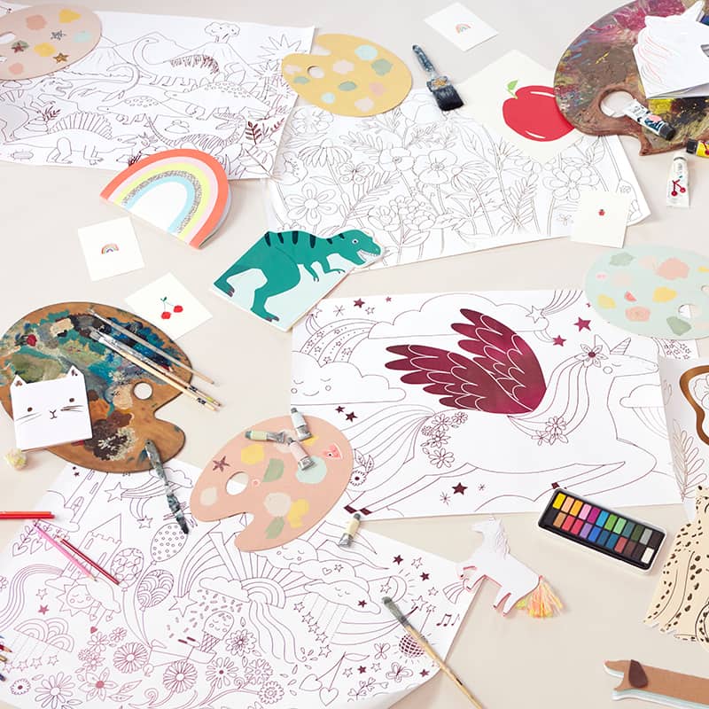 Mit diesem Set von Meri Meri, bestehend aus zwei Ausmal-Postern, macht man jeden künstlerisch begabten Dino-Fan glücklich. Die Poster sind aus umweltfreundlichem Papier hergestellt und mit schönen Kupferfoliendetails bestückt. Mit Farben befüllt, sind sie ein echtes Deko-Highlight!