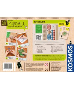 Mit diesem Set bauen sich Kinder ihren eigenen Mini-Tischkicker für sich und ihre Freunde. Wie sie die Verpackung in ein Fußballfeld verwandeln und die Tore aufbauen, zeigt ihnen eine umfangreiche Anleitung, die zusätzlich viele Hintergrundfakten zum beliebten Ballsport enthält. Die Trikots der Spielfiguren können in den Lieblingsfarben oder den Farben der Lieblings-Mannschaft angemalt werden – und schon kann das Match beginnen. Basteln, bauen, spielen – Anpfiff zur Fußball-Meisterschaft zuhause!
