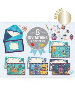 Eine festliche Mappe für Einladungen voller Magie! Dieses Set zum Thema Piraten besteht aus 8 illustrierten Einladungskarten, 8 passenden Umschlägen und 2 Stickerbögen, um jeder Nachricht eine persönliche Note zu verleihen. Der Metallic-Effekt und der matte Druck unterstreichen jedes Element, was für einen Hauch Eleganz und Originalität sorgt. Das Qualitätspapier garantiert ein sauberes Ergebnis – für unvergessliche Einladungen.