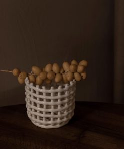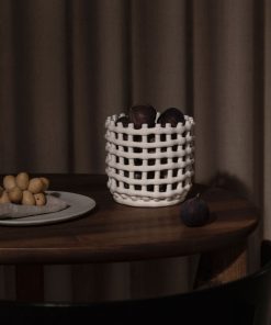 Der wunderschöne ferm LIVING Centrepiece Korb Weiß S misst Ø 16 x 14,5 cm und besticht durch sein beeindruckendes Design. Das Keramik Centerpiece von ferm Living ist ein einzigartiger Korb für deinen Couch-oder Esstisch. Die Keramikschale verbindet die traditionelle dänische Handwerkskunst des Korbflechtens mit der Töpferei.