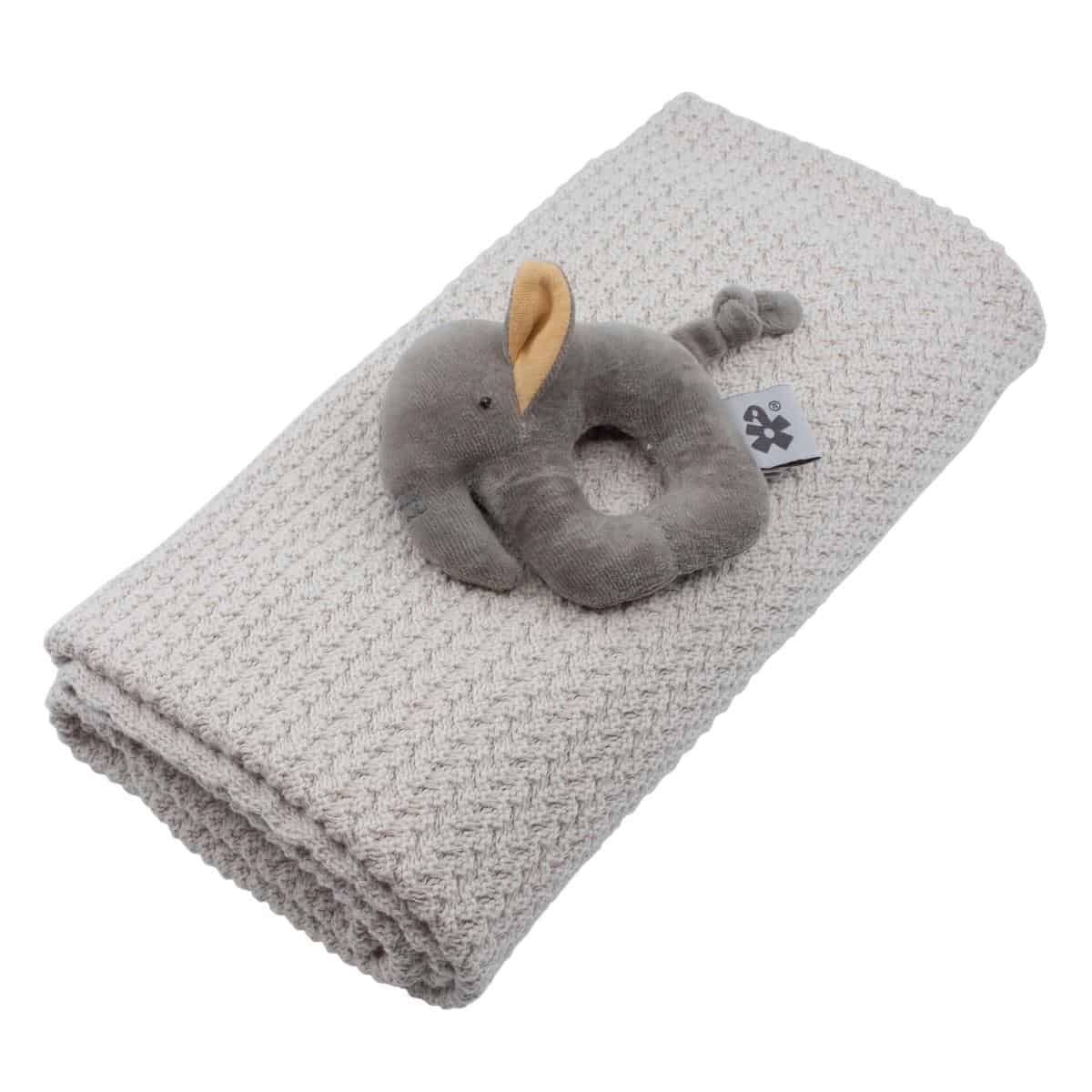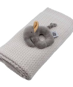 Ob Couch, Kinderwagen oder Wickel-Unterlage – dank des beigen Farbtons und des extra hohen Kuschelfaktors passt diese Babydecke einfach zu allen Situationen! In diesem Geschenk-Set zusätzlich enthalten ist eine Rassel aus Velours in Form eines kleinen Elefanten.
