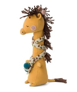 Dieses entzückende Mitglied der Picca Loulou-Familie eignet sich perfekt als kuscheliger Begleiter auf allen Wegen. Der anschmiegsame Langhals ist besonders stolz auf seinen Schal, der an den Enden jeweils mit einem blauen Pompom verziert ist. Das Kuscheltier wurde in Handarbeit gefertigt und besteht aus Leinen und Baumwolle sowie einer 100% recycelten Polyester-Füllung.