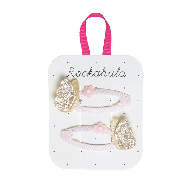 Mit diesem Haarspangen-Set von Rockahula, bestehend aus zwei mit Stoffband umwickelten Haarklammern, fallen die Kleinen besonders modisch auf. Die in süßer Schmetterling-Optik gehaltenen Haarklammern sind bei jedem Outfit ein echter Hingucker!
