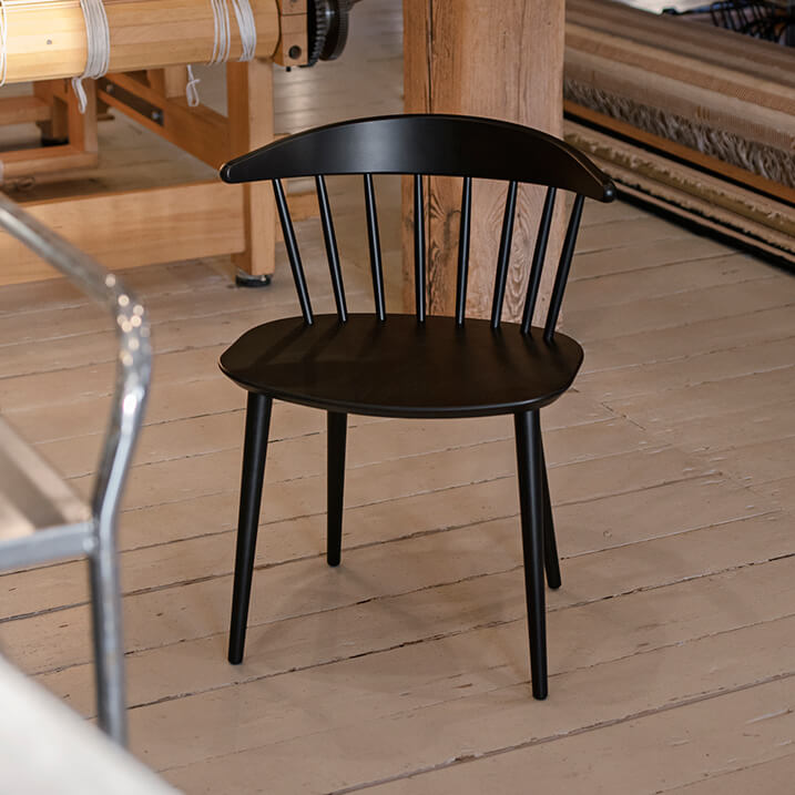 Klar, modern, skandinavisch, erschwinglich! Der HAY Stuhl J104 Schwarz ist ein ganz einzigartig designter Stuhl: Viel visuellen Raum nimmt seine breite Rücken- und Sitzfläche ein. In Kombination mit dem vertikalen, grafischen Ausdruck der Rückenlehne in filigraner Spindelstruktur ist der Gesamteindruck trotzdem luftig und leicht. Und so ist J104 auch beides: sowohl Esszimmerstuhl als auch Sessel. Aus robustem Buchenholz gefertigt, von Designer Jøergen Bækmark zeitlos gestaltet – und genau so bequem, wie er aussieht. Tipp: Einen einheitlichen und doch aufgelockert individuellen Stil erzeugst Du, wenn Du J104 mit J11o oder J77 kombinierst.