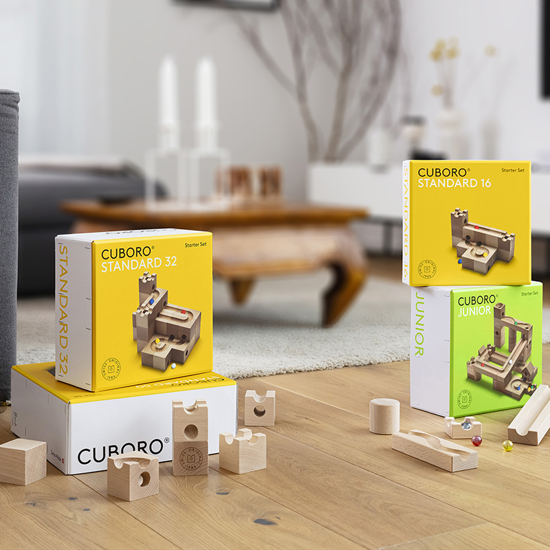 In die faszinierende Kugelbahn-Welt von CUBORO tauchen vor allem kleine Baumeister und experimentierfreudige Kids ein. Mit hochwertigen Holzelementen wie Schienen und Würfeln, die in den jeweiligen Sets enthalten sind, lassen sich im Nu coole Kugelbahnen, aber auch andere eindrucksvolle Bauwerke errichten. Für die Herstellung seiner Produkte verwendet das Schweizer Unternehmen dabei ausschließlich naturbelassenes Buchenholz aus nachhaltiger Waldwirtschaft.