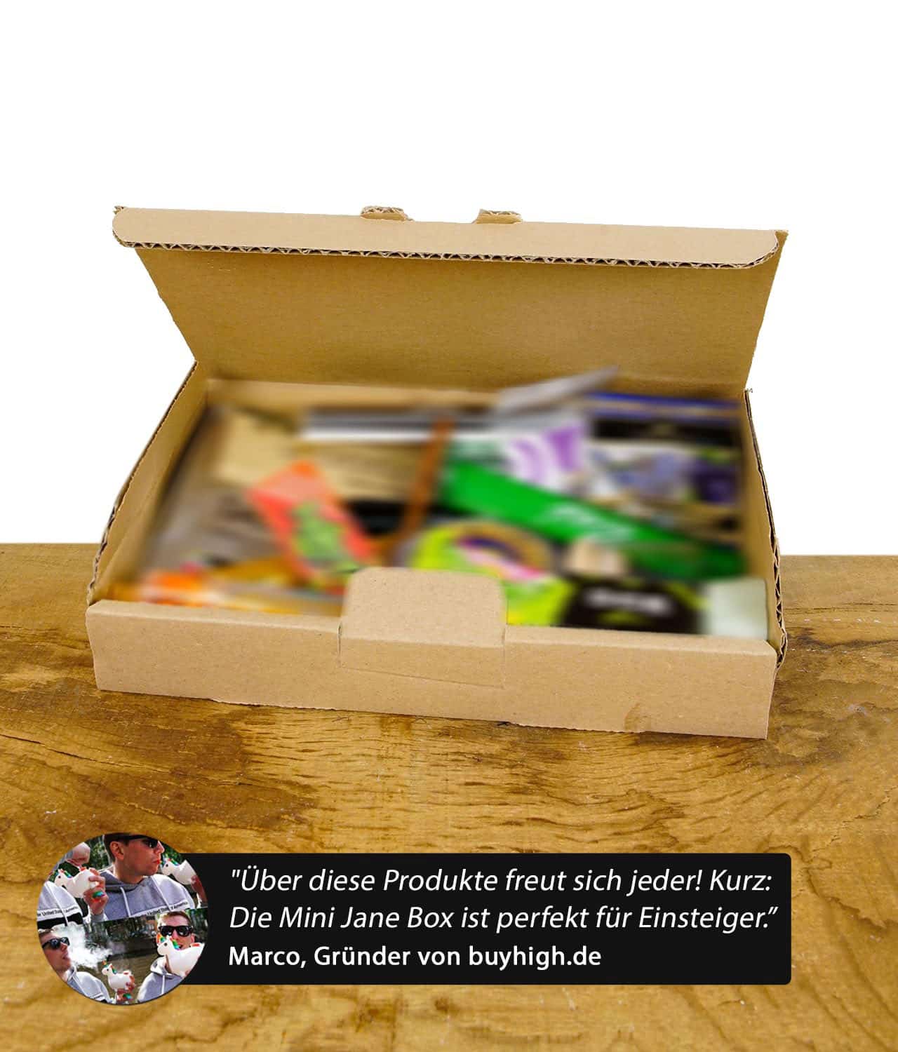 Wenn du Wundertüten als Kind früher schon geliebt hast, haben wir hier das passende Upgrade für dich und deine grüne Lunge: In der neuen Mini Jane Box findest mindestens 10 beliebte Produkte. Jede Box ist eine Überraschung: Paper, Grinder, Jointtubes, Trays, Clipper, Aktivkohlefilter und weitere spannende Produkte können enthalten sein. No-Bullshit-Garantie: Du findest garantiert keinen Schrott in der Mini Jane Box! Natürlich sparst du auch ordentlich Geld: Der Gesamtwert der enthaltenen Artikel übersteigt immer den Kaufpreis der Mini Jane Box.