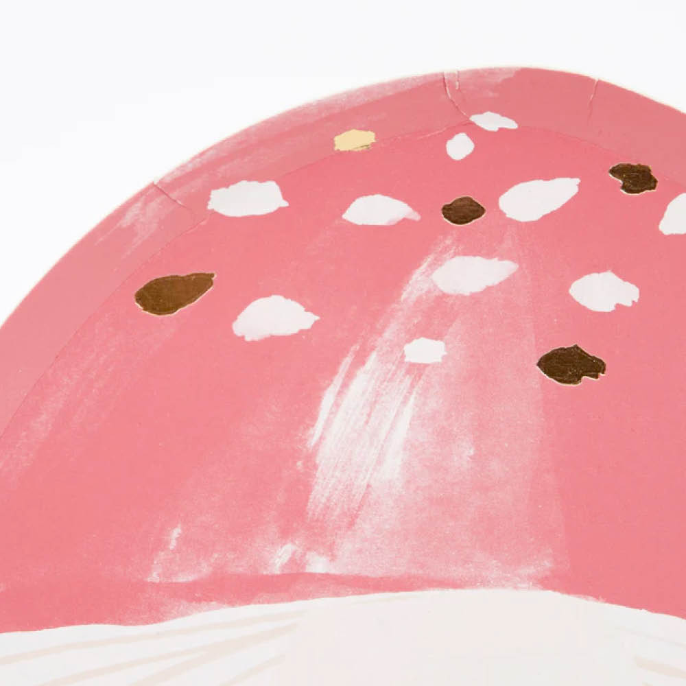 Das Auge isst bekanntlich mit. So wirkt jedes Geburtstagsessen dank dieser zauberhaften Pappteller von Meri Meri gleich noch viel edler und schmackhafter! Sie überzeugen vor allem durch ihre mit Goldfoliendetails verzierte Stanzform: Die Teller sind in waschechter Pilz-Optik gehalten und sehen aus wie aus dem Märchen- oder Feenwald!