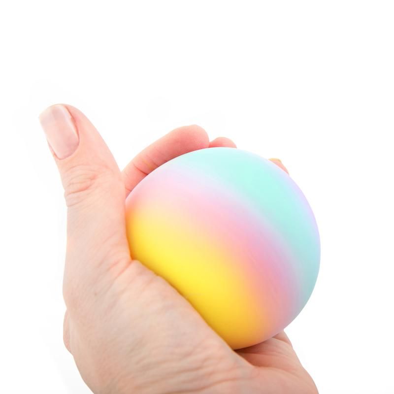 Dieser superweiche Regenbogen-Knautschball mit coolem Farbverlauf sorgt sofort für gute Laune – auch, wenn man gerade innerlich etwas angespannt ist. Einfach drücken, lächeln und an etwas Schönes denken – so hat Stress keine Chance!