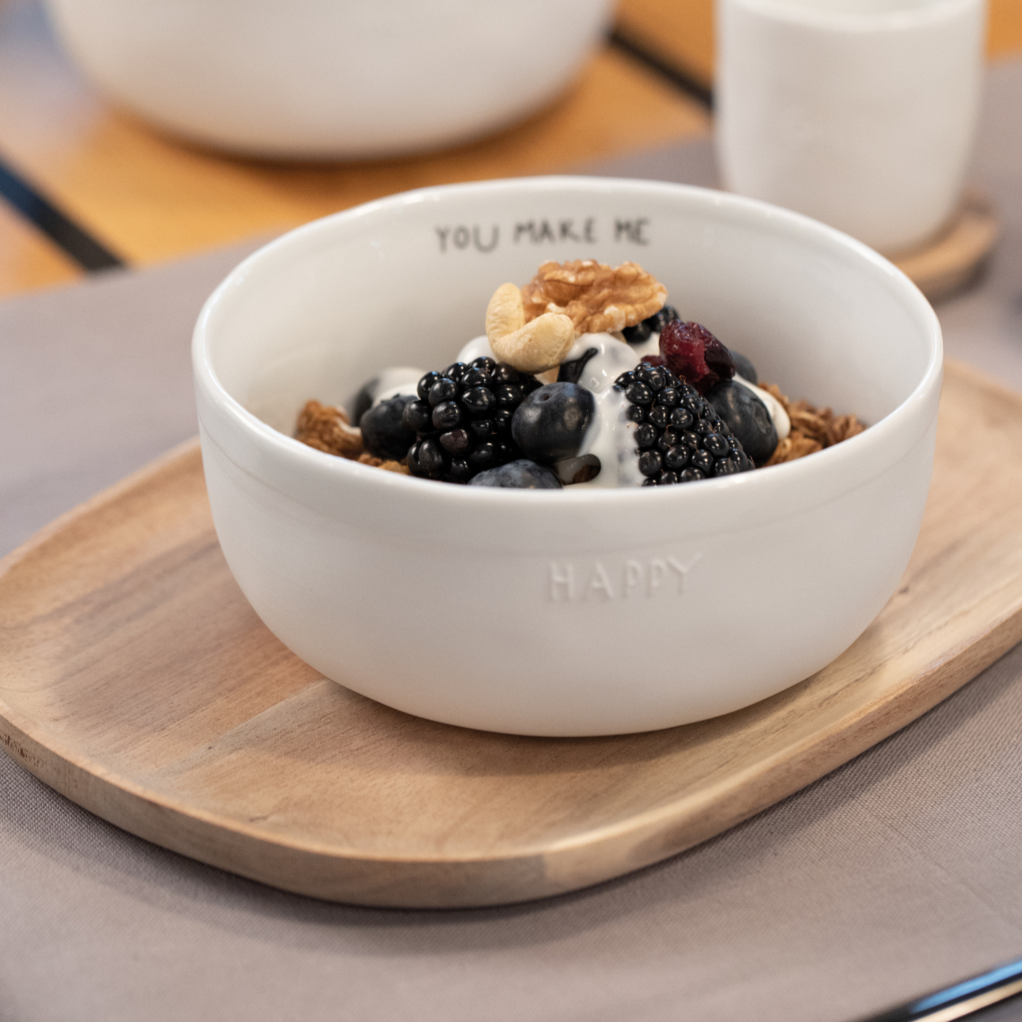 Diese Schale ist dank ihres schlichten, aber eleganten Designs ein feines Detail auf jedem Frühstückstisch, das mit einer hübschen Prägung auf Innen- und Außenseite verziert ist. Ideal geeignet ist das Gefäß beispielsweise für ein kräftigendes Müsli nach dem Aufstehen. Es entstammt der „Guten Morgen“-Kollektion des Traditionsherstellers räder.