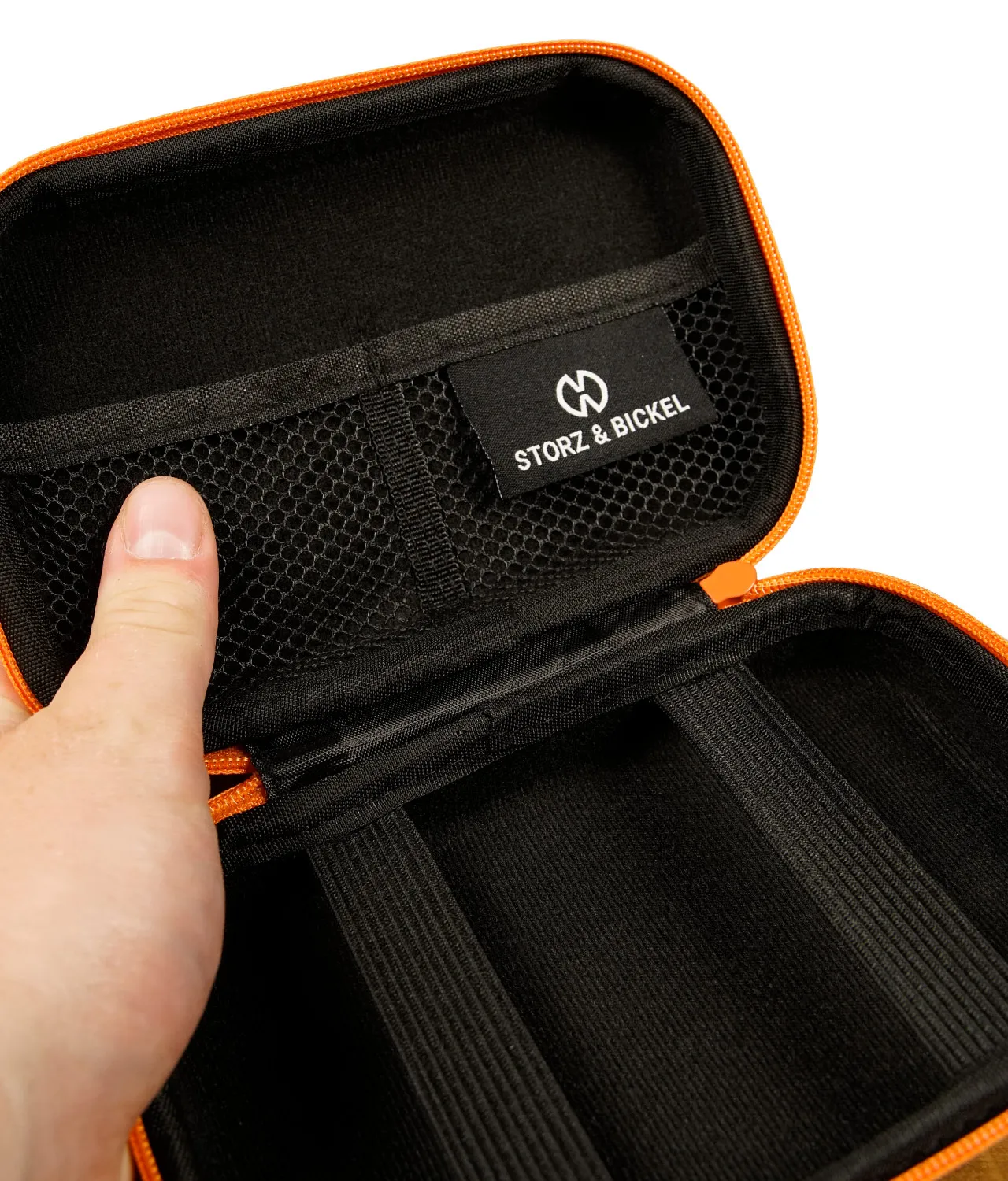 - Design: Kompakte Größe mit Clamshell-Form und Reißverschluss