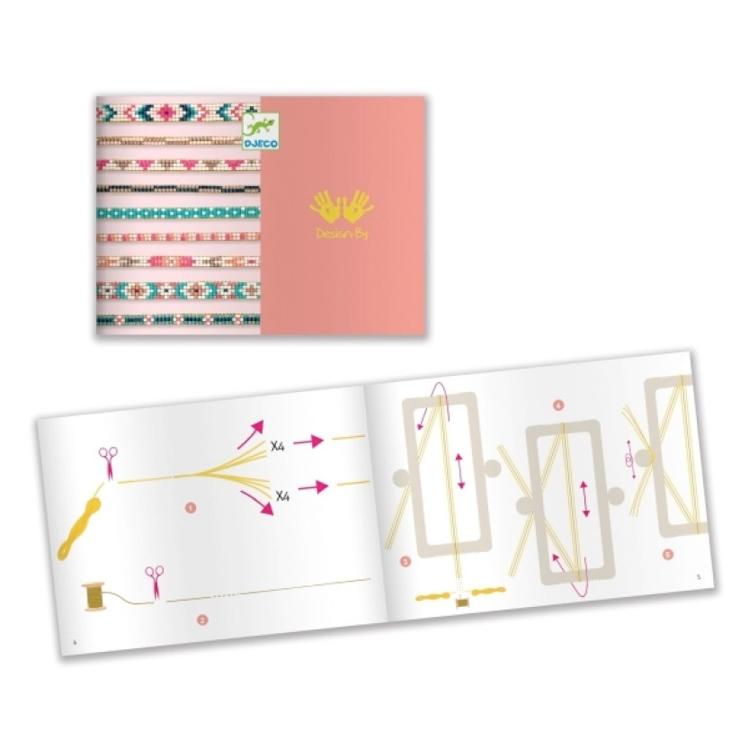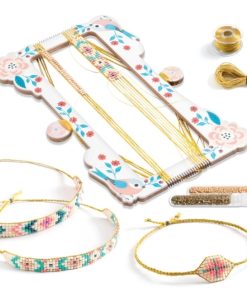 Hübschen Schmuck selbst herstellen funktioniert dank dieses Webrahmens von DJECO kinderleicht: Mit ihm und den bunten Perlen, die mitgeliefert werden, lassen sich ganz einfach schöne Armbänder weben. Diejenigen, die noch Ideen benötigen, können sich an den Vorlagen sowie der Schritt-für-Schritt-Anleitung orientieren – so entstehen im Handumdrehen die schönsten Mode-Accessoires!