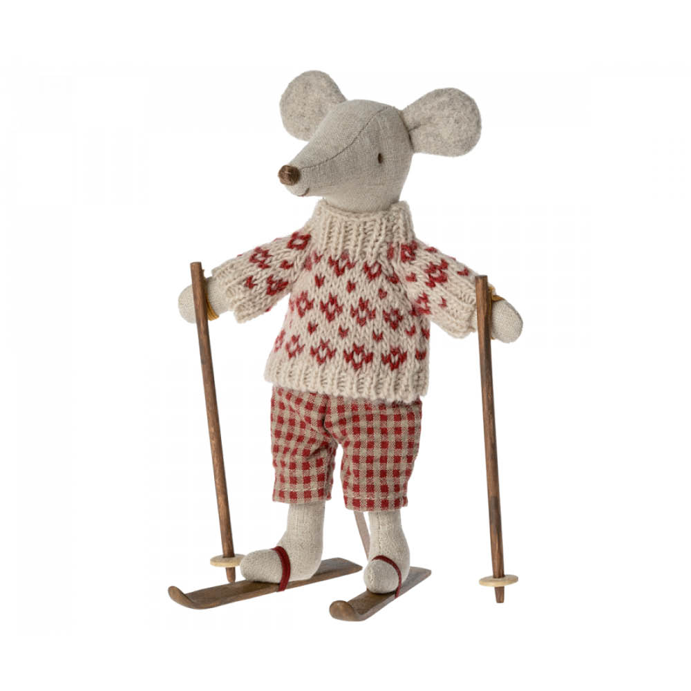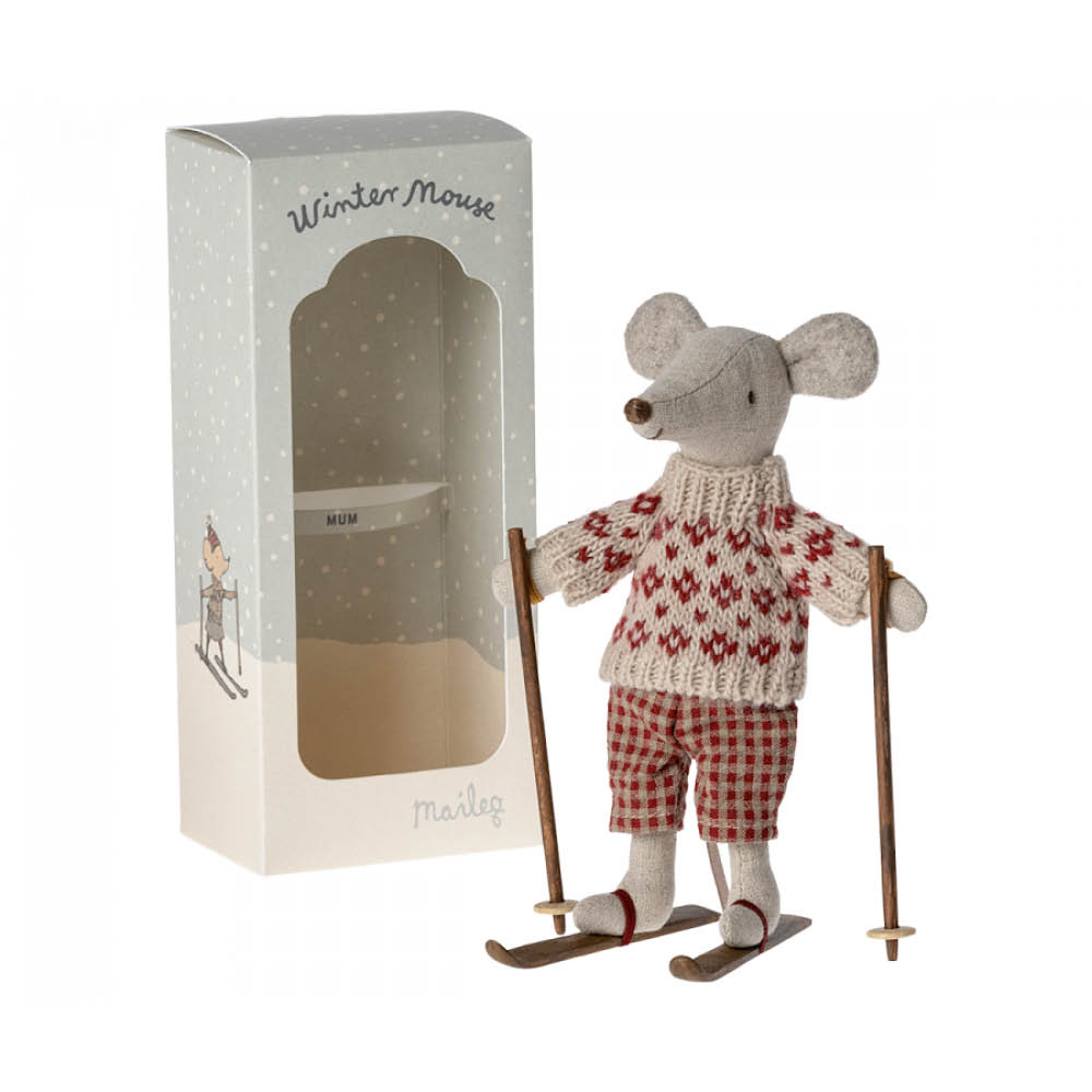 Let it snow, let it snow, let it snow – unsere Wintermäuse-Familie kann es kaum noch abwarten, die Piste auf ihren Ski herunterzubrettern! Sowohl Wintermaus Mama und Papa als auch Bruder und Schwester tragen alle kuschelweiche Pullover und sind mit ihrem winterlichen Equipment bestens für die Abfahrt vorbereitet. Maileg setzt bei der Herstellung seiner Kuscheltiere auf eine besonders hochwertige Stoff-Komposition. Das sorgt für ein besonders angenehmes Gefühl beim Spielen.