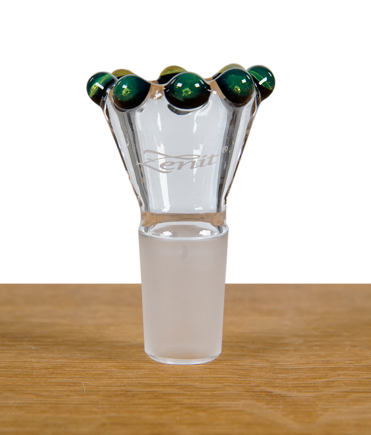 Der Zenit Flutschkopf in NS19 mit Krone in Schwarz-Glitzergrün ist ein wunderschönes Bongköpfchen mit tollen Farben von Zenit